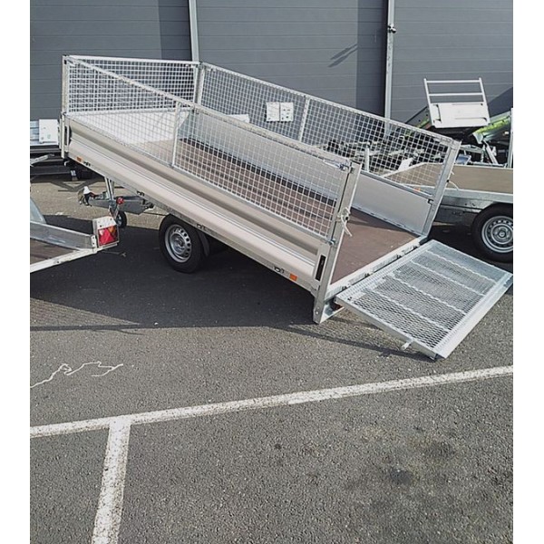 Remorque neuve FRANC, RIS340F150, équipés de ridelles alu (35cm), de réhausses grillagées ( 60cm ), et d'un hayon de monte charge.